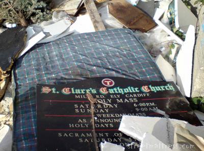 Although the sign is for St Clares Church in Ely, I found it and the mattress, on a patch of wasteland, 12 miles away. The Rev Matty was spreading the word.