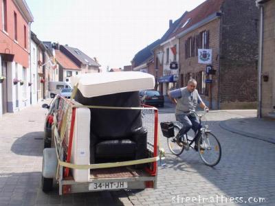 the man on the bike is a former postman, lifting mail and riding a bike year in year out made him to retire early, but he still shows his hernia next to these incoming dutch mattresses in my office's street