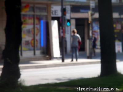 my number 30 in germany, I had to take the picture windows closed, because no time, hence the foggy effect because of the film inside, but I rather like the combination of lights and the girl, the blue and the trees that make it like a dia