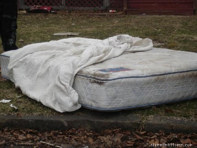 We apologize for saying that this mattress was found in one of the worst neighborhoods in Youngstown. That was my mistake. It was actually found in one of the nicer neighborhoods. The guy that let Alice take the picture was very COOL! I talked to him and shook his hand. I apologize. Thanks for the pic buddy!