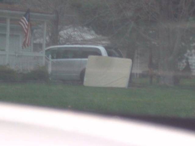 Alice & I was out mattress hunting and just happen to see this mattress as we passed a wooded area. We had to turn around and go back to take this picture.