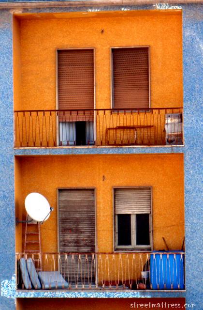 The orchard walls are high and hard to climb, but I have night's cloak to hide me from their eyes, a cloak unveiled, hung by a red clothespeg, molletta da bucato, your lips are tender. Finally the real stuff on a balcony, 4 floors high, colors without need to change, borders not to be used.
