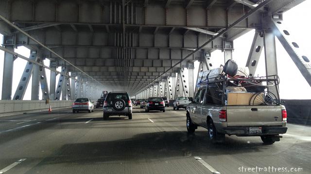 | crossing the Bay Bridge back to the East Bay |