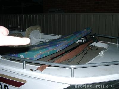 | boat and mattress but no fish |
