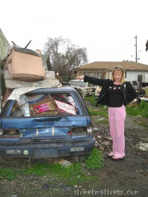 | First we had to convince the suspicious residents to let us take a photo. Then she bravely stood in muddy dog poo and pointed - what a trooper! |