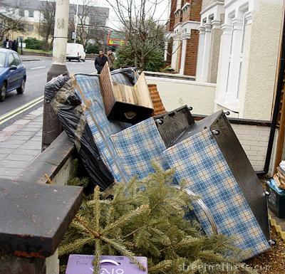 | January 28th, and a Christmas tree finally gets the boot. The title of this pic comes from the writing on the blue Vaio box. |