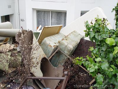| These two rather plain bedbases were, I believe, part of the debris from a basement flat which was flooded as the result of a cloudburst last August. |